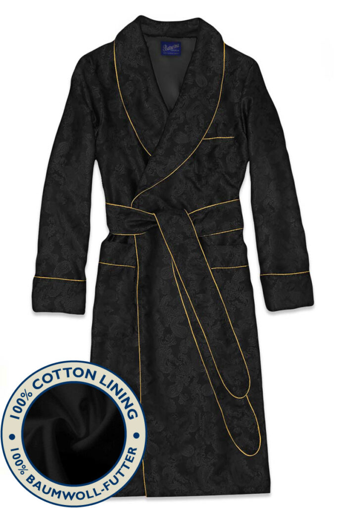 Men’s Dressing Gown Black Paisley Gold Quilted
