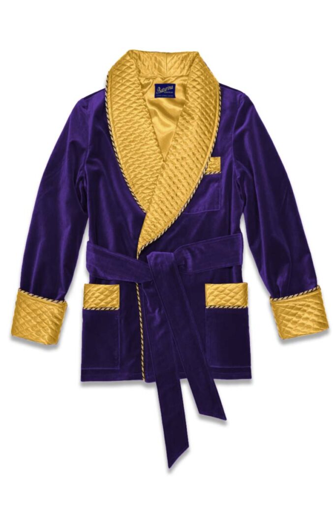 Men’s Smoking Jacket Purple Velvet Black Quilted